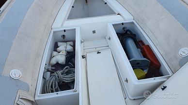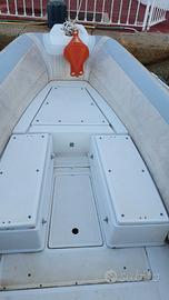 Vendo gommone Novamarine RH 460 anno 2003 con motore fuoribordo Mercury 40 EFI tre cilindri ad iniezione elettronica anno 2007 con 460 ore di moto. Il gommone presenta un'ottima tenuta al mare e raggiunge una velocità di 28 nodi. I tubolari sono in buone condizioni, equipaggiati di tessuto protettivo antiscivolo nelle zone più soggette ad usura e di un comodissimo musone di prua in vetroresina completo di puleggia scorri sagola e bitta di ormeggio. Luci laterali di via ad incasso in consolle. Pompa di sentina automatica ubicata sotto il gavone di poppa. Batteria Varta da 70 Ah nuova, serbatoio benzina da 25 litri. Cuscineria prendisole a cellula stagna che va da centro a prora. Consumi davvero irrisori (appena 8 litri/h a velocità di crociera). Ampio gavone prodiero, capienti gavoni laterali oltre a due gavoni centrali sotto coperta. All'interno della consolle è ricavato uno spazioso vano porta oggetti a tenuta stagna al quale si accede tramite una botola circolare frontale oltre ad uno inferiore al quale si accede tramite un portello d'ispezione rettangolare poppiero. Disponibile sin da subito per qualsiasi prova in mare. Prezzo non trattabile.