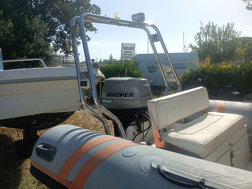 Gommone 470 in buone condizioni,prendisole a prua ,cuscineria completa, impianto elettrico ok, pompa sentina, eco, stereo, roll-bar acciaio, motore mariner 40 trim elettrico accensione elettrica Euro 3500 Possibilità di finanziamento