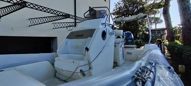 Gommone a chiglia rigida Lomac 710 IN 2012 Lunghezza 6.95m Larghezza 2,55,m Benzina Vetroresina HYPALON motorizzato 150 CV Yamaha INJECTION 4 TEMPI COMANDO ELETTRICO FLOTTANTI HYPALON ORCA modello del 2012 con un totale di 420 ore di navigazione - Flottanti HYPALON di alta gamma - Direzione ELETTRO IDRAULICA per leggerezza di pilotaggio - Motore dotato di compressore, massimo di coppia e consumo molto basso a bassi regimi Grande prendisole anteriore e schienale ribaltabile posteriore Tenda amovibile che chiude lo scafo facendolo diventare casa galleggiante Wc chimico e cucinina incluso il verricello elettrico per facilitare ancoraggi Caratteristiche : - Lunghezza: 6.95 m carta di circolazione - larghezza : 2.55 m - Capacità : 18 persone - 5 compartimenti flottante - Serbatoio carburante : 220 litri - Serbatoio acqua : 54 litri - Cat B / 18 persone - Peso senza motore : 960kg Equipaggiamenti : - Prendisole anteriore - Schienale posteriore ribaltabile - Tenda da sole telescopica e ribaltabile sul ROLL BAR posteriore in FIBRA - Tenda di console - Tenda di Bolster - Verricello elettrico comando console pilota - Doccia di ponte - Pompa di sentina - Supporto multiplo per canne da pesca in inox - Clacson - Bussola - Illuminazione di navigazione - Presa USB impermeabile - Faro led a lungo raggio posteriore sotto il ROLL BAR - WC chimico nella console pilota - Armamento costiero di sicurezza completo ELETTRONICA: - SONDA GPS LOWRANCE TATTILE HDS 9 CARBON - SONDA GPS LOWRANCE TATTILE ELITE 7 TI - VHF NAVICOM FISSO CON ANTENNA A LUNGA PORTATA RT 750 - PILOTA AUTOMATICO COLLEGATO ALLA SONDA LOWRANCE Motore : - Motore dotato di comando elettronico per una manovrabilità senza pari - Motore revisionato ogni anno dal concessionario YAMAHA - 420 ore di navigazione - 2 batterie - Revisione integrale motore a marzo 2024 - Antivegetativa marzo 2024 Il rimessaggio MARINA SERVICE VIA TANCREDI DI CHIARALUCE 107 OSTIA Il titolare Fabio Falbo Tel 3926950874