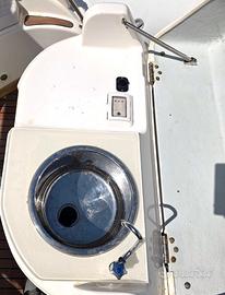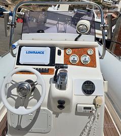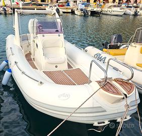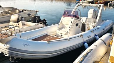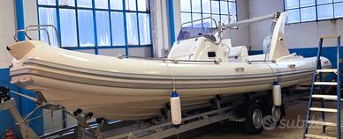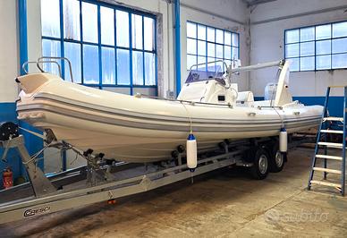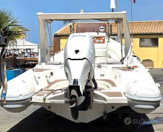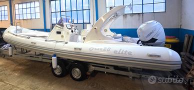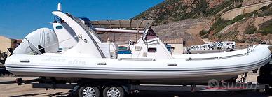 vendo stupendo gommone air elite 28, 9 metri f.t. (categoria B), abilitato al trasporto di 18 persone con motore Mercuri Verado (bianco) 300 cv 4 tempi con manetta elettronica 500 ore circa di moto, tutto del 2008, il motore è stato appena, completamente, tagliandato da officina autorizzata Mercury, tutto fatturato e dimostrabile. Tubolari e motore in perfetto stato, rimessati al coperto, predisposizione frigorifero con impianto già esistente, VHF, serbatoio acqua dolce, 3 docce disposte lungo tutto lo scafo (poppa, centrale accanto al bagno, prua), ancora elettrica con comando dalla consolle o telecomando, manetta elettrica, idroguida, bagno con wc e doppi oblò oscurati e apribili , roll bar con luci (interne ed esterne), luci camminata interne, computer di bordo, ecoscandaglio e GPS Lowrence Elite 9 acquistato da 2 mesi ( solo quello € 1400), fari fissi di poppa, impianto 24 V, plotter, prese interne 12 V presa interna 220 V, presa banchina, impianto stereo Herz con 4 casse boss, tendalino e chiusura campeggio nautico, dotazioni di bordo complete, portacanne in acciaio, cuscineria nuova. Scafo perfettamente performante con ottima tenuta a mare formato. Visibile e pronto a qualsiasi prova. Prezzo più basso della categoria su Subito.