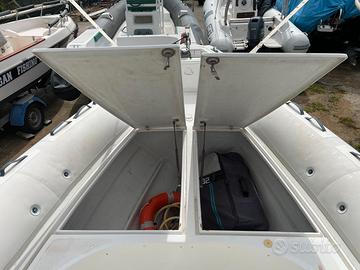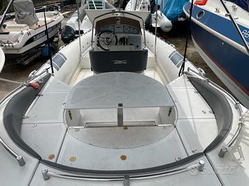Vendo Gommone Albatros Antigua 750 8 m fuori tutto e larghezza 3,1 max 18 persone, motore EFB Mercruiser 5.0 MPI (260 cv), piede Alpha One II Gen., tutto 2002 sempre rimessato ed in ottime condizioni con i seguenti accessori; Pedana di poppa in VTR prolungata e rivestita di evo teak grigio con comode maniglie ad arco in inox; Scala a scomparsa in acciaio inox a 3 gradini integrata nella plancetta di poppa; Copertura invernale integrale e copri consolle per l'estate realizzati su misura entrambi 2024; Tendalino in acciaio inox che può rimanere aperto anche in navigazione + tendalino con arco in inox con estensione oltre la pilotina di guida fino a prua realizzato su misura nel 2024; Luci subacquee a led sotto la poppa + faro di profondità + luci di via + luci di cortesia del pozzetto; Stereo Bluetooth + 4 casse MR6W (180 w ognuna) tutto marca BOSS Marine; Navigatore Chartplotter Touch Screen Simrad GO5 XSE comprensivo di trasduttore; Tavolo a scomparsa sotto coperta; 6 ampi gavoni; Ampio prendisole prua + ampio pozzetto poppa con divanetti, convertibile ed estensibile in spazioso prendisole, vedi foto; Tappezzeria completa in ottimo stato; Rifacimento fazzoletti, fasciatura musone ed interno coperta 2024; Doccetta a poppa con pompa autoclave sostituita (luglio 2025) e serbatoio di 60l; Salpa ancora elettrico con comando su consolle; Rollbar in VTR con prese accendisigari Usb + Usb-c e luci; Rifacimento impianto elettrico 2022 + sostituzione completa pulsantiera; 3 pompe di sentina marca Marco'; 2 batterie con staccabatteria; 2 serbatoi benzina per un totale di 200l, 1 da 75 litri (2024) e l'altro 125 litri in inox Vesselview Mobile Smartcraft 2024; Motore Mercruiser 5.0 MPI (260cv) appena sbarcato e revisionato; Collettori originali sostituiti nel 2024; Campana motore revisionata 2024; - Sostituzione transom e timone 2025 - Verniciatura sentina e motore 2025 - Tagliando Piede + motore eseguiti nel 2025 + altri lavori eseguiti