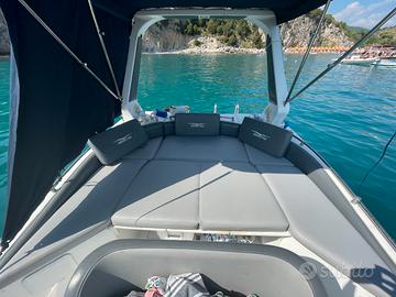 Ampio prendisole prua + ampio pozzetto poppa con divanetti, convertibile ed estensibile in spazioso prendisole, vedi foto;