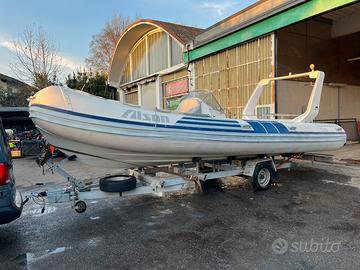 Vendo gommone Alson 750 motore entrofuoribordo Mercruiser 260 hp completamente rifatto impianto elettrico e impianto benzina, compresa la revisione del carburatore, poche ore di navigazione completo di rollar in vetroresina, impianto doccia, doppia cuscineria, Log e ecoscandaglio. Carrello Pedretti monoasse da 1500 kg. completamente revisionato.