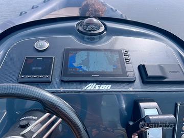 Accessori/optional: Plotter Garmin multifunzione su plancia con trasduttore e scheda, tendalino completo poppa in tessuto microforato, chiusure laterali tendalino in tessuto microforato, coperta in Teak sintetico, copertura motore nera per navigazione, idroguida ultraflex 2024, due batterie 2024, stacca batterie/commutatore, verricello salpa ancora elettrico con n.2 postazioni di controllo (consolle - wireless), ancora e catena in acciaio inox, radio e n.4 casse 200W ad illuminazione dimmerabile Fusion anno 2024, gps garmin 2024, frigo a cassetto, tavolo pranzo e prolunghe prendisole per letto di poppa, luci subacquee e luci di cortesia azzurre, attacco su consolle n.2 usb, n.4 parabordi neri, dotazioni sicurezza 8 persone entro le 12 miglia, scaletta, estrattore fumi automatico serbatoio benzina, pompa sentina automatica e manuale, luci navigazione notturna, copertura totale battello. Carica batterie 2025 e copertura consolle 2025 in tessuto sumbrella.