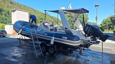 Gommone Alson 750, scafo 1998, tubolari nuovi integrali 2021. Motore Yamaha 150cv 4 tempi, anno 2009, 700h, sempre tagliandato. Doppio prendisole prua e poppa, ampio gavone e doppio tendalino. eco scandaglio Garmin, radio usb Bluetooth, luci navigazione, luce profondità, luce ricerca. Plancette di poppa in teak, doccino acqua dolce. Carrello Ellebi stradale. Batterie e pompa benzina appena sostituiti ( settembre 2025). Pronto a navigare, piccole sistemazioni solo estetiche ma non funzionali. Visibile ad Ameglia (SP) prezzo non trattabile, no perditempo.