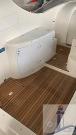 Generatore 3,2 kW, climatizzatore cabina e pozzetto, elica di prua, TV 24" Full HD con antenna amplificata, manette elettroniche, idroguida, autopilota, spiaggetta di poppa maggiorata, doppia cucina interna/esterna.