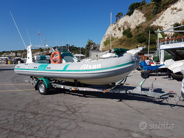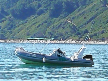 Vendo gommone Alson 6 Flash del 1998, perfetto completamente originale, mai data antivegetativa, con motore Mercury 135cv V6 Elpto 2 tempi sempre del 1998, poche ore di moto, trim nuovo e carrello Simacar con assale Al.ko. nuovo, corde freni nuovi, revisionato ad ottobre 2023, gomme da carico appena sostituite, argano elettrico e impianto elettrico controllato e perfettamente funzionante. Sul gommone sono presenti: radio cb, radio Boss Marine con presa usb, 4 altoparlanti Boss Marine da 150 watt, estintore, bussola, salvagente di ordinanza con cima galleggiante, giubbotti salvagente, doccetta con serbatoio acqua dolce da 30 lt., tavolino estraibile, cuscineria originale, serbatoio benzina in acciaio da 120 lt. sotto la consolle, ancora con catena e cima da 30 m., pompa di sentina automatica, 2 batterie da 80 A nuove con stacca batterie, rollbar in vetroresina, scaletta di risalita in legno e acciaio, telo di copertura invernale originale con logo Alson. Il motore parte al primo colpo. Il gommone è stato fermo in rimessaggio al coperto per 6 anni prima che lo acquistassi io. Andato subito in moto senza nemmeno cambiare le candele... Prezzo ? 10.500 trattabili dopo visione a Terni. Disponibile per qualunque prova anche con vostro meccanico di fiducia.