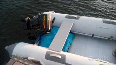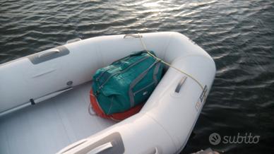 Gommone portatile, a ghiglia gonfiabile, paiolato in alluminio, molto robusto ,comodo ,spazioso e pregevole esteticamente. Motorizzabile fino a 20 hp, completo di custodia, giunture termosaldate.Possibile spedizione.