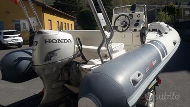 Vendo bellissimo gommone Arimar da 5 mt. motorizzato Honda 40/50 cv 4 tempi. a carburatore. Il gommone ha i tubolari nuovi rigorosamente in neoprene. ha il Roll bar d'acciaio con luci di via, ecoscadaglio, doccia,pompa sentina,USB, cuscineria completa, carrello rimorchio ellebi da 750 kg, appena revisionato e sostituto cuscinetti mozzi freni cavi ecc.. molto spazioso internamente con prendisole allungabile. compreso di tendalino parasole e telo di copertura totale. il gommone ha poche ore. veniva utilizzato solo 15 giorni all'anno. viene venduto completamente lavato lucidato e tagliandato Honda ufficiale. perfetto.pronto da usare. chiamate senza impegno. Erik 3482126760