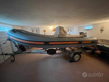 Motore Yamaha top 700 power trim, 50Cv all'elica praticamente nuovo, Carrello Ellebi 650 basculante freni nuovi, Gommone Motore e carrello unico proprietario. Sempre in garage. Timoneria monocavo nuova. Vendo per poco uso. Visionabile .
