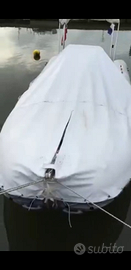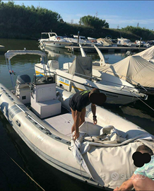 Motore Yamaha 115 Cv. 2t. Consol di giuda centrale, Roll Bar, tendalino estensibile, Scaletta, Telo copri gommone fatto su misura sdoppiato con apertura a prua per facilitare ancoraggio, quindi si può tenere anche in navigazione e funge da tenda. Serbatoio carburante in acciaio inox da 150 lt. Ampi gavoni per stivare tantissime cose (parabordi, mezzo marinaio, cime, giubbini di salvataggi, dotazione di bordo, attrezzatura da pesca etc. etc.) Serbatoio di Lt.50 acqua e doccetta, pompa di sentina, Serbatoio olio x Miscelatore, filtro benzina, ecoscandaglio GPS Garmin.