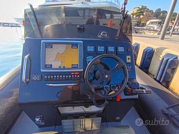 Gommone professionale di costruzione italiana, equipaggiato con doppia motorizzazione Yamaha fuoribordo da 300 hp ciascuno. L’allestimento è pensato per operazioni rapide, escursioni, impieghi tecnici o tenderaggi, con sedute individuali dotate di cinture, consolle centrale con parabrezza, e strumentazione completa. Il ponte è rivestito in materiale antiscivolo, con ampi gavoni stagni e accessi tecnici ben distribuiti. A prua è installato un verricello elettrico Quick con ancora e catena inox, mentre a poppa si trovano due motori protetti da coperture e impianto carburante ispezionabile. Ottime condizioni generali, pronta all’uso.