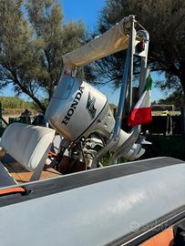 Vendo gommone di 4,50 metri in ottime condizioni (privo di toppe e perdite di aria), con consolle di guida, ideale anche per principianti. È dotato di gavone di prua con prendisole. Il motore è un Honda 4Tempi 30cv portato a 40cv. Nell'ultimo tagliando di luglio 2025 sono state sostituite le corde di sterzo.