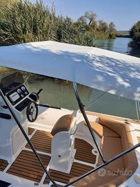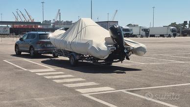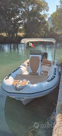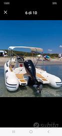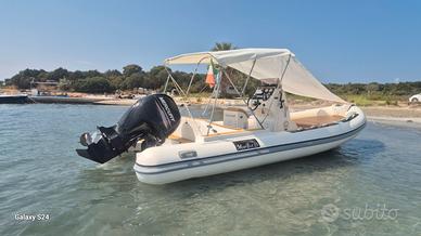 Vendo, gommone MIRO' BAT 23 anno 2017 + MERCURY F 150 XL EFI 2017 con 320 ore di moto L'imbarcazione, oltre agli accessori standard è provvista dei seguenti optional: Doppio tendalino, telo camping, telo parasole a scomparsa, copertura completa per riparo invernale, impianto stereo, stereo, luci di cortesia nel pozzetto, doccia nel pozzetto, salpa ancora elettrico con 50 mt di catena, 3 porta canne, Gps/ ecoscandaglio LOWRANCE cuscineria nuova 2024. 2 batterie, Velocità Max oltre 40 nodi, a 23 nodi consumo circa 19 It/ h con 4 persone a bordo. Gommone pronto alla boa e testabile a San Cataldo di Lecce (LE) previo appuntamento
