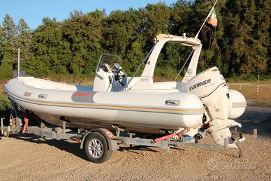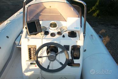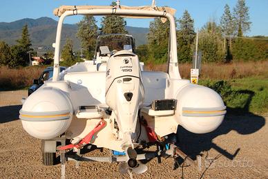 BAT 590SL Gommone anno 2006 acquistato nel 2019 da cantiere navale ed utilizzato 15 gg in estate. Rimessato al coperto per tutto il resto dell'anno DATI TECNICI: - Lunghezza: 5,9 mt. - Larghezza: 2,53 mt. - Massa: 560 Kg. - Portata 10 persone (omologazione CE, Categoria C ) INFO E ACCESSORI - Scafo senza antivegetativa - Tubolari originali con qualche segno del tempo senza perdite rinforzati a poppa nel 2024 - Cuscineria (2016) -Tendalino in acciaio inox estensibile fino a prua con coperture laterali. - Doccia con serbatoio acqua da 60 Lt. - Doppia pompa di sentina (una con galleggiante). - Doppia batteria con staccabatterie. - Ecoscandaglio garmin a colori (2016). - Geonav 5 cartografico. - Vhf icon. - Stereo BOSS bluetooth con 2 casse sul rool bar - Luci di navigazione - Timoneria idraulica (2018). - Serbatoio carburante 165 Lt. - Supporto motore ausiliario - Motore Evinrude 150 E-tec del 2008 (rimessaggio invernale già eseguito. Revisione generale motore effettuato da officina specializzata e documentabile con fattura) A parte, carrello Tecnitrail 13 quintali con cerchi in lega e braccio verricello rinforzato (?2200) Gommone visionabile a Terranuova Bracciolini (AR) Disponibile a consegna nella costa Toscana Non Scambio