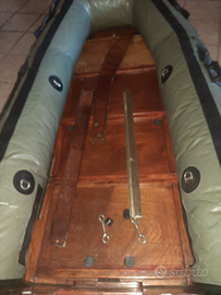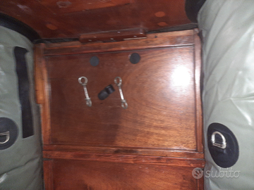 Gommone BAT originale d'epoca, fine anni '70 - anni '80, in buono stato generale. Il fondo e lo specchio di poppa sono in legno verniciato, integro e stabile, uno dei punti di forza di questo gommone. I tubolari in PVC originale presentano segni di normale usura dovuti all'età ,non sono riusito a gonfiarli a pressione perche ho un compressore amatotuale. Le valvole potrebbero richiedere una revisione sono presenti i tappi a vite di ottone originali con incisione BAT e ckmoleti di guarnizionj ring . Gli unici accessori presenti sono è quelli visibile nelle foto.