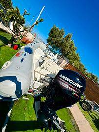 Gommone BSC 46 totalmente personalizzato, con aggiunta a prua di musone, serbatoio 100 lt in acciaio inox Ecoscandaglio touch Lowrance HDS live 7 pollici +(valigetta) + sonda TM 150 + con extra cavi alimentazione per visione in casa + scheda mappe avionics , Motore Mercury Pro 40/70 nuovissimo con circa 300 ore . Telo professionale appositamente creato su Misura, cuscineria rifatta imballata e mai usata. Carrello revisionato da poco . Poi 4 porta canna da traina in acciaio con tutta l attrezzatura di bordo. + vasca del vivo e tendalino.(mai usato) - impianto con 2 batterie con annesso stacca batteria/e.