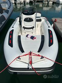 Gommone BSC 50 Sport in condizioni eccellenti, dotato di motore fuoribordo Suzuki DF40ASTL, tutto 2017, tutto sempre tagliandato e ricoverato in capannone d'inverno, in condizioni impeccabili. Utilizzo principalmente in laguna a basse velocità, ore di moto 430. Molte dotazioni comprese tra cui delfiniera di prua, cuscineria a cellula chiusa, pompa di sentina, serbatoio acqua, gonfiatore, scaletta, kit riparazione originale, serbatoio carburante 90 LT, indicatore di livello, doccia a scomparsa a poppa, serie luci di via in console e luce 360 a poppa, tendalino sole, telo copri console, tromba ad incasso, presa usb/presa 12V/contaore, bussola Ritchie, ecoscandaglio Garmin, ancora Hall 6kg con 5mt catena e cima 30mt, sedile fronte console, schienale di poppa ribaltabile, prolunga prendisole di prua, plancette a poppa. Gommone unico proprietario e tenuta in maniera eccellente, consegnato pronto alla navigazione per l'estate! Info Centro Nautico Lignano - Michele Andretta PREZZO TRATTABILE