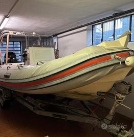 Gommone Bsc 57, motorizzato con Mercury F115 del 2009 con 105 ore sempre tagliandato. Lunghezza 5,71m larghezza 2,45m anno di costruzione 1997, portata massima 10 persone. Il gommone presenta i seguenti optonial: Gps ed ecoscadaglio Lowrance, radio vhf, tendalino e tenda nautica, serbatoio in acciaio da 100l, serbatoio acqua dolce, scaletta, doccia, doppia batteria, doppia pompa di sentina, rollbar in acciaio e cuscineria in ottimo stato. Il gommone viene fornito con carrello LB 1300kg omolgato da revisionare. Utilizzato prevalentemente in acqua dolce e sempre rimessato in capannone al coperto nei periodi invernali. Gommone simile a nuova jolly, nautica vesuviana, spx, Bwa, Solemar, Marlin, Joker boat, Lomac, Salpa,Sacs, Capelli,Bat. Gommone visionabile a Mariano Comense, prezzo leggermente trattabile e contattare se veramente interessati.