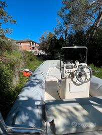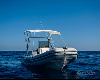 Vendo gommone di 5 metri completa di motore Yamaha anno 2009 Motore sempre tagliandato e rimessato. Portata della barca: 8 persone La barca sta in mare solo 4 mesi all'anno. Accessori: Tendalino Cuscineria completa Doccia con serbatoio acqua dolce di 50 litri Pompa di sentina Scaletta in acciaio Roll bar in acciaio Possibilità di posto barca