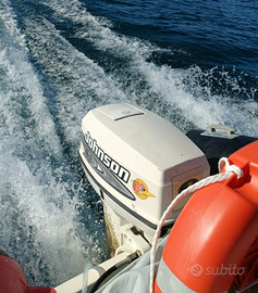 Gommone BWA 480 un po' vecchiotto colorazione un po' sbiadita manca ultimo cuscino finale di punta ,ma nessuna perdita con motore Johnson 737 40cv del 2001 trim elettrico e in ottime condizioni e affidabile,carrello portata 450 kg con gomme semi nuove e revisione che scade ad aprile 2026 ma anch'esso in ottimo stato