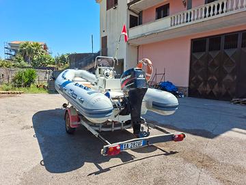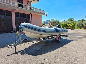 Vendo Gommone BWA 5.10 fuori tutto, con motorew Mercury 40/60 con centralina a 60 CV e circa 450 ore di moto, carrello Ellebi 750 kg frenato da revisionare ma in ottimo stato. Il gommone ha impianto elettrico funzionante, sentina automatica, impianto doccetta. I tubolari tengono la pressione ma a prora avrebbero bisogno di una copertura in quanto si presentano screpolati,proprio per questo il prezzo è leggermente inferiore al valore effettivo. Visibile a Catania. Se l'annuncio è online il gommone è disponibile.