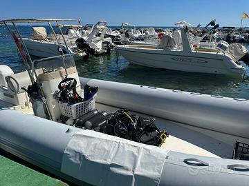 Anno di costruzione 1999, tubolari rifatti interamente 3 anni fa; Lunghezza 740 larghezza 296; Omologato 24 persone; Peso a secco 1100 kg; Motore Mercury Optmax 225cv del 2002 con 450 ore circa di navigazione, tagliando fatto a maggio 2025; Contagiri, conta miglia, indicatore trim, livello carburante, orologio DOTAZIONI Dotazioni di bordo entro le 6 miglia con 15 giubbotti salvagente; Doppia batteria da 100 AP cad. con stacca batteria a 4 posizioni; Impianto elettrico e carburante con selettore, interamente rifatto questo inverno; Doppia Tanica da 60 lt più altre 2 asportabili da 30 lt; Pompa di sentina; Serbatoio d’acqua dolce da 60 lt con doccetta; Bussola ed ecoscandaglio/gps GARMIN stiker plus 5cv; T-Top in acciaio inox con altro tendalino mai montato di riserva; Scaletta di risalita; Disponibile per prova in mare .