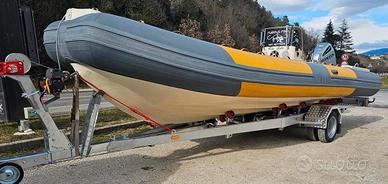 Gommone BWA 740 in ottime condizioni,con HONDA 250cv circa 400 ore e 20 cv con 30 ore,Scafo del 2007 tubolari nuovi in tessuto neoprene Orca.il gommone sta sempre a secco e al coperto,usato per singole uscite e poi rimesso in magazzino,si presta benissimo per gite familiari con le sue molteplici funzioni, cucina con lavandino doccia strumentazione completa, impianto stereo Fusion 3000 watt e amplificatore Hertz, grande cuscino prendisole in lattice che va montato sul calpestio, carrello Spoleto rimorchi 25 quintali gemellare nuovo, il tutto è in condizioni impeccabili .Qualsiasi prova anche in acqua e con vostro meccanico. Non vendo separatamente ed è possibile fatturare