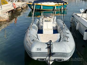 Gommone BWA California 5.50 con motore Yamaha 40/60 a carburatori con 1250 ore. Buone condizioni generali, anno 2005, perfettamente funzionante. Si vende necessariamente con carrello 1000 kg da revisionare.