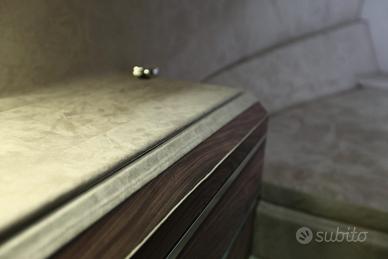 motorizzazione 250 o 300 cavalli, letto matrimoniale,bagno separato,altezza interna 1,73m,letto da 2,40 x 1,80,prendisoli di prua e di poppa, portata 12 persone in categoria B, carena a step adatta per un uso familiare o sportivo, morbido e asciutto in condizioni estreme, sicuro e preciso in virata, veloce e dai consumi irrisori.Frigo, cucina ecc ecc.