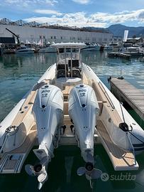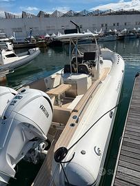 Gommone nuovo in pronta consegna full optional iva esposta prezzo trattabile!!!! Optional: Roll bar Frigo Motori 300 full elettronico Tappezzeria cappuccino Tendalino di poppa Bagno Plance maggiorate Teak