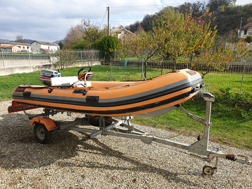 Vendesi gommone Joker Boat 420 con carrello stradale Michelini e motore modello 521 Evinrude 25 Cv 2 tempi. Il carrello é perfetto ed appena revisionato quindi prossima revisione Agosto 2026, il gommone é chiglia rigida, mai trattato con antivegetativa e davvero poco usato per uscite domenicali ( da verificare una possibile microperdita visto che dopo tot giorni un settore si sgonfia leggermente, comunque utilizzabile senza problemi) motore da tagliandare. Per info contattatemi. Si vende tutto il blocco a 2000 trattabili oppure separatamente da concordare. Nico
