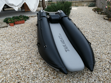 Gommone catamarano,velocissimo a remi e motore eletrico, molto stabile.