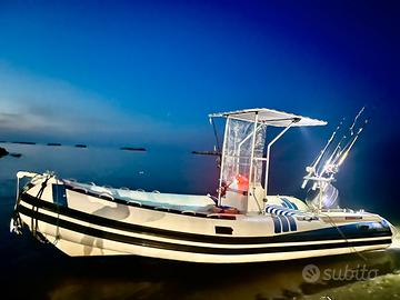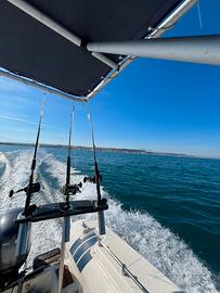 Vendesi gommone Eurmarine “stampo carena del Lomac”categoria B con portata di 10 persone,motorizzato Yamaha 40 cv 4 tempi ,con prestazioni da 28 nodi e bassi consumi, con possibilità di guida senza obbligo di patente. Tubolari in perfette condizioni senza perdite , allestimento come visibile in foto, t top , porta canne - rocket 3 posti. Ampia consolle centrale ,serbatoio benzina da 60 litri, dotazioni di sicurezza inclusi. Si vende per passaggio a categoria superiore. Disponibilità di prova in mare previo appuntamento e possibilità di trasporto in Abruzzo Lazio Molise Puglia Marche. Prezzo trattabile dopo visione.