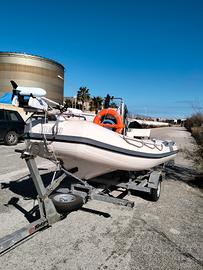 GOMMONE Novamarine RH 400 sempre manutenzionato, con motore Mercury 20 CV accensione elettronica, trim elettrico con 3 ore(tre) di moto praticamente immacolato con garanzia Mercury totale. Motore di prua Watersnake con girobussola, telecomando e batteria nuova al litio di 80 amp. 2 (due) ore di moto. Ecoscandaglio con GPS Lowrance 9 pollici. Carrello stradale omologato anch'esso usato poco. Vendo con rammarico causa trasferimento.