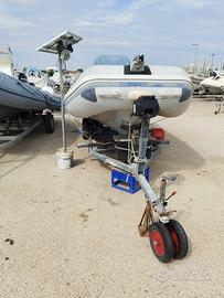 Vendo gommone,carrello,motore 40/60 Yamaka,pannello solare per ricaricare 3 batterie di cui 1 da 100amp 2 da 80amp x messa in moto Verricello per recupero gommone più tutto gli accessori Solo motore 3500€