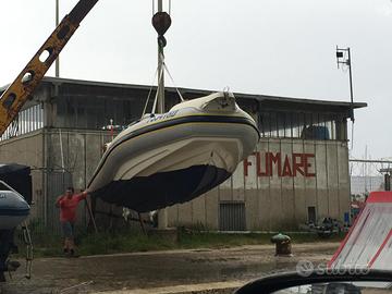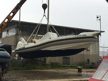 Gommone Marlin Boat, 8,00m.x 2,92 m.Varato nel 2005- 2 motori Johnson 140KW stesso anno, ore moto 700 sempre rimessato documentabile, unico proprietario . In data16.01.2024 cancellato daiRR.II.D per passare nella categoria natanti.Fornito di tutte le dotazioni per navigazione senza limiti : autogonfiabile( non più necessario per gommoni marchiati CE)-VHFCobra -GPS e ECHO Garmin- verricello elettrico con doppi comandi-Doccetta-Frigo elettrico-due tendalini per sole- prendisole e cuscinerie in ottimo stato-2 coperture totali invernali-tavolino a prua smontabile. Il natante staziona in acqua solamente nel periodo estivo per 3/4 mesi . Carrello stradale da rivedere e collaudare ; viene usato come invasatura in rimessa per il periodo invernale. Il prezzo non è trattabile