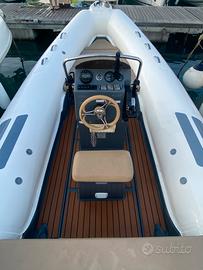 Vendesi gommone domar f6 con motore Honda 40 /60 cavalli (450 ore) silenzioso e dai consumi contenuti, tutto anno 2020. Gommone in perfette condizioni pronto alla boa per navigare, già' tagliandato e sempre rimessato al coperto nel periodo invernale. Dotato di roll bar in acciaio, tendalino, teak sintetico, luci di via, sentina, tromba, radio FM/AM e doccietta. Vendo per passaggio ad imbarcazione superiore. Disponibile per visione e prova, no perditempo.