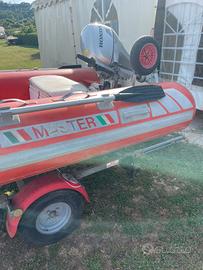 Gommone master 430 con motore fuoribordo 4 tempi benzina Honda bf15 gambo lungo perfetto consumi pari a zero serbatoio originale Honda guida a barra con un quarto di gas esce subito in planata chiglia rigida in vtr sullo specchio di poppa c sono istallate 2 ruote per l'alaggio rimovibili come in foto piccola console centrale lato destro con panca di seduta con ampio gavone all'interno gavone di prua con ancora e accessori attrezzato per la pesca con due porta canna inox istallati su console vendo euro 2500 poco trattabile chiamare Paolo al 3289277565 non spedisco no mail possibile prova su appuntamento