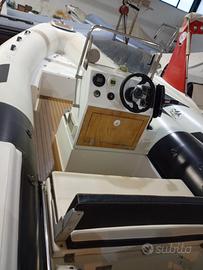 gommone 560 rifatto tutto 2024 compreso tubolari, ha calpestio in teak sintetico su tutto, passerelle musone e plancette in vtr, serbatoio acqua e benzina, stereo, scaletta, roll-bar con tendalino prolunga prendisole, viene venduto cerato e con antivegetativa, senza motore, prezzo 10500 trattabile