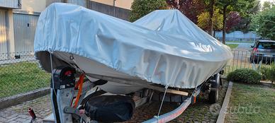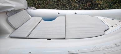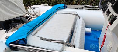 Per motivi di salute,vendo gommone Focchi 550 del 2010,lungo mt. 5.68-largo mt.2.45,no antivegetativa,carena lucida,allestito con 2 batterie Varta del 2025,una da 95 amp tradizionale ed una da 70 amp agm, prendisole aggiuntivo mai usato,2 serbatoi inox,uno per la benzina da 80 litri con filtro decantatore e l'altro per l'acqua da 45 litri,doccia,tendalino sole inox,radio stereo della Boss Marine,navigatore gps/eco scandaglio della Lorenz Marine 8 pollici 16/9,a colori,cartografico con cartografia del mediterraneo e adriatico,luci led in tutti i gavoni,telo viaggio in pvc del 2025,telo notte,dotazioni con ancora Bruce da 5 kg e 5 mt. di catena inox.