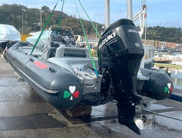 Gommone Focchi 730 con Suzuki 300cv, anno 2023; accessoriato e condizioni eccellenti. (doccetta acqua dolce. scaletta bagno. una batteria dedicata al motore più una batteria ai servizi, timoneria idraulica, manette elettroniche, accensione keyless, plotter gps, radio vhf, stereo con 4 altoparlanti, cuscineria rossa trapuntata, cagnaro completo per l'invernaggio, sospendite dedicate per l'alaggio/varo); Tagliando motore appena effettuato - A 25 nodi non consuma nulla ed è molto silenzioso, ....ma se volete spingere arriva a 56 nodi. Altre foto su richiesta.