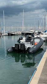 gommone seminuovo completo di doppia motorizzazione Suzuki df300, T-Top alluminio, timoneria idraulica, salpa ancora elettrico, luci di via, doccia, bussola, doppia presa USB, GPS, Radio, trasduttore, frigorifero, lavandino, cuscineria a cellule chiuse, n. 02 serbatoi CE da 347 litri, portata max 20 persone, categoria "C".