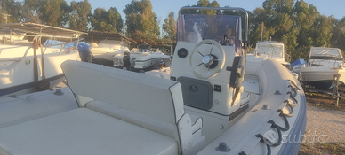 Vendo Gommone Gommonautica G48 Elegace, 5 mt. fuori tutto, motorizzato con Yamaha 40/60 quattro tempi a carburatori con 270 h di moto. Eccellente tenuta di mare specialmente in condizioni di mare formato, carena a V profonda, consolle di guida con tieniti bene in acciaio inox, timoneria in poliuretano e inox, parabrezza, luci di navigazione, gavone centrale, prendisole di prua con cuscineria, gavoncino per ancora, gavone di prua, panca gavone di poppa con sedile imbottito a schienale abbattibile, prendisole di poppa con cuscineria, scaletta inox, tendalino parasole, doppia tanica, doppia batteria. Omologazione CE 9 persone. Possibilità di vendita separata carrello Cresci 750 kg anno 2021.