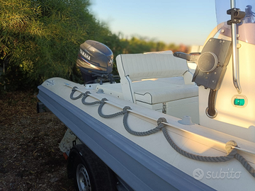 Vendo gommone Gommonautica G48 elegance, 5 metri fuori tutto, motorizzato con Yamaha 40/60 a carburatori con 250 h di moto. Gommone conosciuto per la sua eccellente tenuta di mare, tenuto sempre al coperto e messo in acqua solo per brevi periodi. Dotato di prendisole di poppa e di prua, cuscineria completa, tendalino e dotazioni.