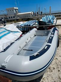 Vendo splendido gommone honda honwave t40 ae3 comprato a dicembre 2024 e messo in acqua 2 volte, condizioni perfette nessun difetto. Misure: 3.95x1.89 Omologato per 7 persone e può tenere al massimo 30 cv. Oltre al gommone è presente un paiolato in alluminio a quattro ante, kit con due remi, kit per il gonfiaggio, sacca per il gommone, sacca per il paiolato, barra orizzontale per sedersi e scatolone originale. Il prezzo è leggermente trattabile perché è pari al nuovo.