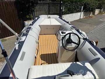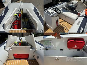 ATTENZIONE: o Il prezzo riportato si riferisce all'acquisto del solo gommone e del motore. o Posso vendere anche il carrello insieme al gommone, è presente un'altra mia inserzione dedicata. o I prezzo NON E' TRATTABILE quindi, se ci incontriamo per visionare il gommone, intendo che abbiate già accettato il prezzo riportato. o Non vendo solamente il carrello Per foto e caratteristiche del carrello contattatemi in chat che vi mando tutto. Il carrello è stradale, omologato e con revisione in scadenza ad Aprile 2026. DESCRIZIONE DEL GOMMONE: Gommone HONDA in PVC come da titolo NUOVO MODELLO. Lunghezza 4mt e larghezza 1,90mt Chiglia pneumatica, acquistato NUOVO a Luglio 2024 quindi ancora in garanzia ufficiale HONDA. Accessori inclusi nel prezzo visibili della descrizione in foto. Il gommone si presenta in ottimo stato, sempre lavato con acqua dolce dopo ogni uso, mantenuto sempre su carrello e ben coperto, condizioni perfette, NESSUNA MICROPERDITA, NESSUNA RIPARAZIONE AI TUBOLARI, tiene perfettamente la pressione. Presenta solamente una riparazione sul telo di fondo effettuata professionalmente, invisibile dall'esterno ed eseguita in maniera perfetta. La riparazione NON RIGUARDA I TUBOLARI o CAMERE D'ARIA ma solamente il telo sotto al paiolato che fa da scafo. Viene venduto completo di documenti in regola, fattura d'acquisto, libretto di uso e manutenzione, certificato di potenza del motore, omologazione del serbatoio benzina. Tutto il gommone, volendo, è smontabile e ripiegabile nelle sue due sacche originali. Su richiesta posso inviare altre foto e video per constatare lo stato del gommone, del motore e del carrello. E' visibile a SANTA MARINELLA (RM) previo appuntamento.