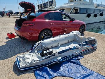 Honda Marine T32 IE3 da 3,2 metri. Usato 4 uscite. (unico proprietario) Pagliolo a chiglia gonfiabile ad alta pressione Viene fornito completo di: sacca da trasporto, remi, gonfiatore manuale, gonfiatore 12V, 2 panche, kit riparazione, tendalino, ruote, ancora, scalina in corda, portacanne, motore e serbatoio. Dimensioni 320,5 x 153,5 cm Peso 39kg MOTORE NUOVO DI FABBRICA Motore fuoribordo OZEAM da 12 cv. 4 tempi benzina, albero CORTO peso 40 kg.