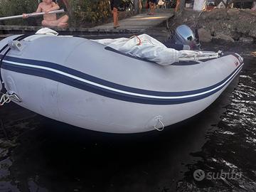 Vendo gommone Honda t40 con motore 20 cavalli pagliolato in alluminio. Tutto acquistato nuovo a luglio 2025, come nuovo usato 2 settimane. Accessori: remi, ancora, sedile gonfiabile, tendalino, ganci ancoraggio bagagli.