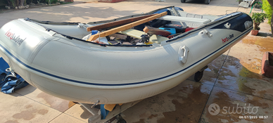 Cedo per inutilizzo Gommone Honda Wave T40 con paglioli in alluminio, chiglia gonfiabile, doppia panca, borsa e accessori, motore Honda 6 CV 4 tempi dai consumi bassissimi, usati sporadicamente in ottimo stato, visionabile previo appuntamento.